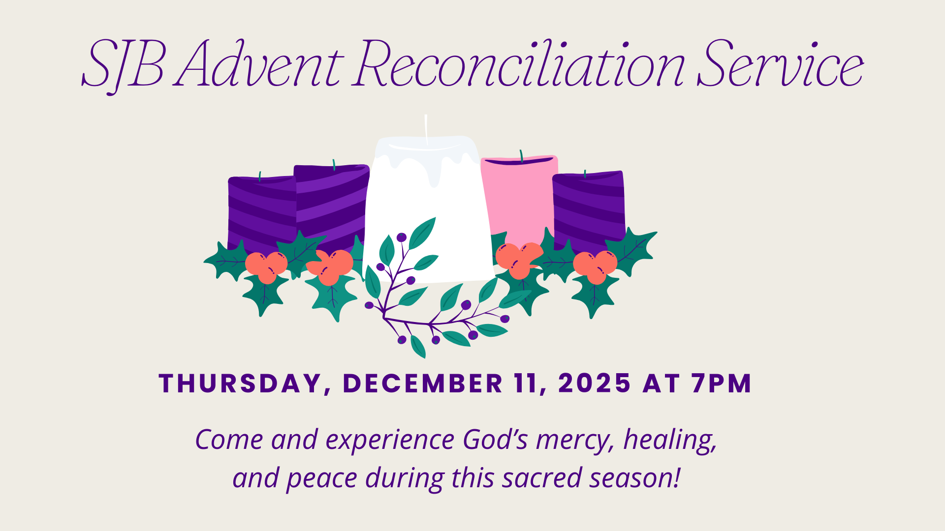 Reconciliation is offered Saturdays at 4pm, or by appointment.